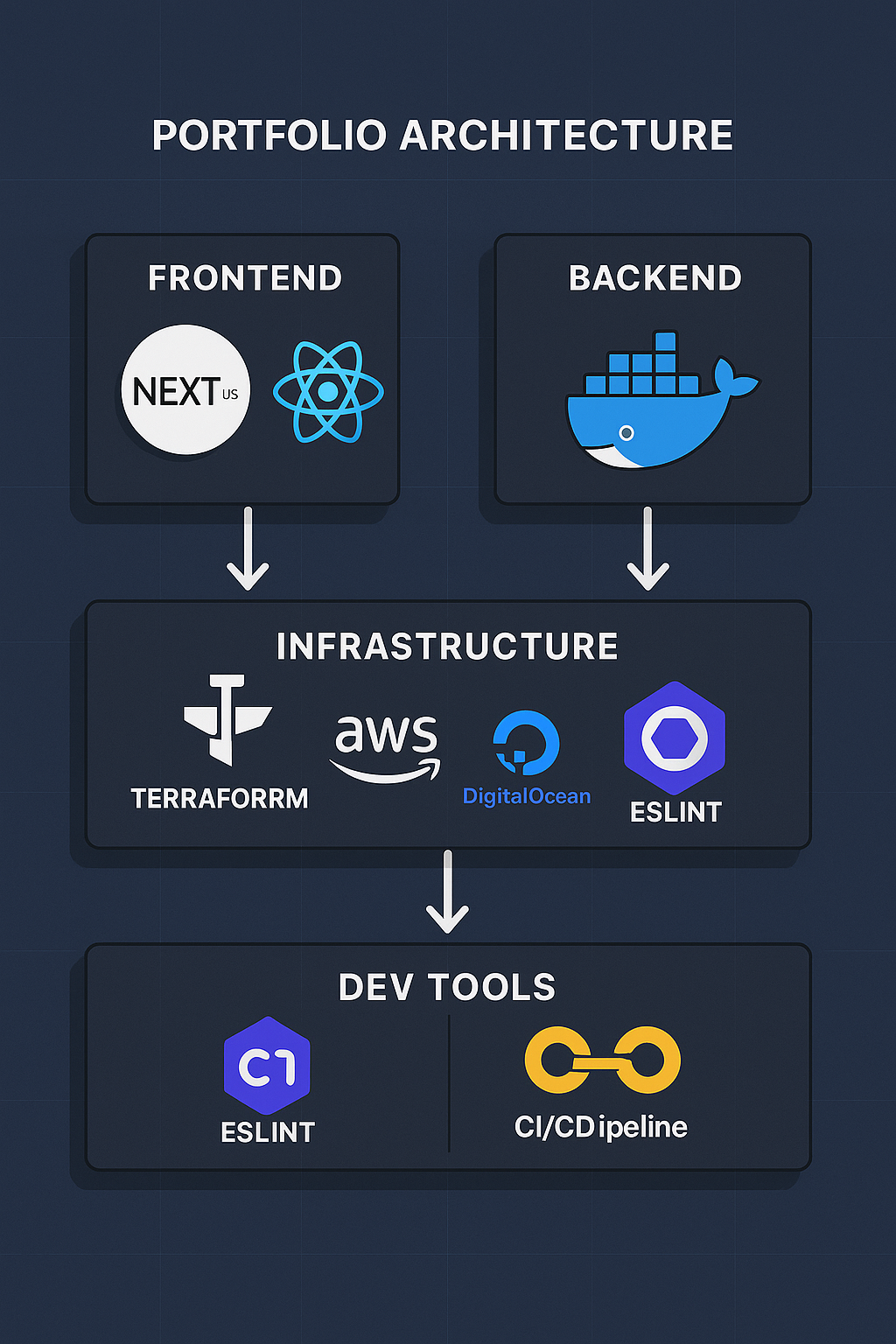This portfolio website represents a modern approach to web development and deployment, combining Next.js for the frontend with containerized deployment strategies and Infrastructure as Code principles.